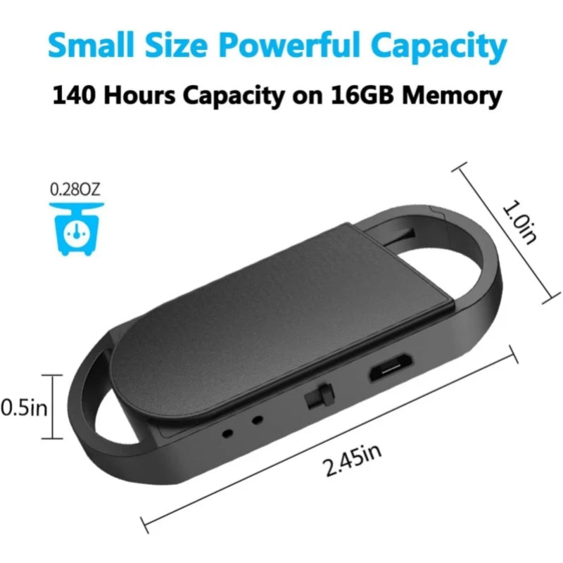 Audio Recorder Pendant Keychain with Built-In Carabiner