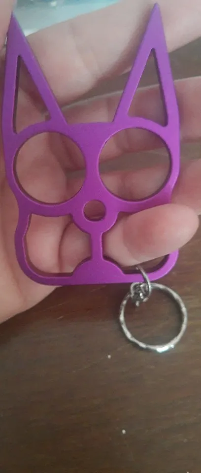 Grip the cat ear keychain through the finger holes and feel the power of this sharp potent self-defense tool. Armed with two large pointy spikes that resemble cat ears, this feline keychain may look cute and dainty, but it can help you fight off an attacker and collect their DNA.