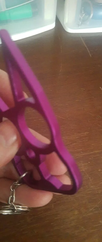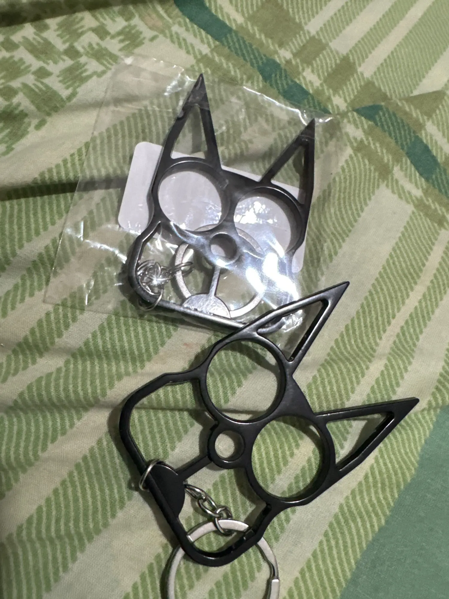 Grip the cat ears keychain around the base with your index and middle fingers with the two sharp points facing outward. Use your instinctive defensive moves to strike an attacker, draw blood, and collect DNA.