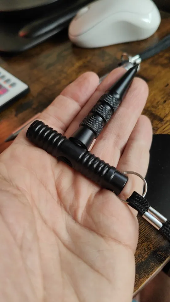so happy i found this again and purchased two! i suggest anyone buying this to add a lock washer so it keeps together. i attach this to the clip on my shorts as edc. i put some old keys on them, enough to add weight when you swing it. i like you can use both ends!