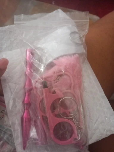 This full protection kit is beautiful and feels great to hold. I tested the mace spray (on the ground) and it has a strong spray. Pokey keychains are sharp too. 10/10 would recommend!
