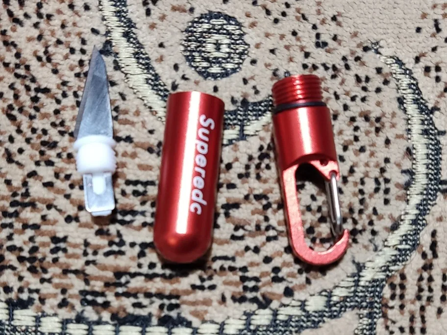 - Mini Capsule with Hidden Blade Keychain Weight: 8 Grams