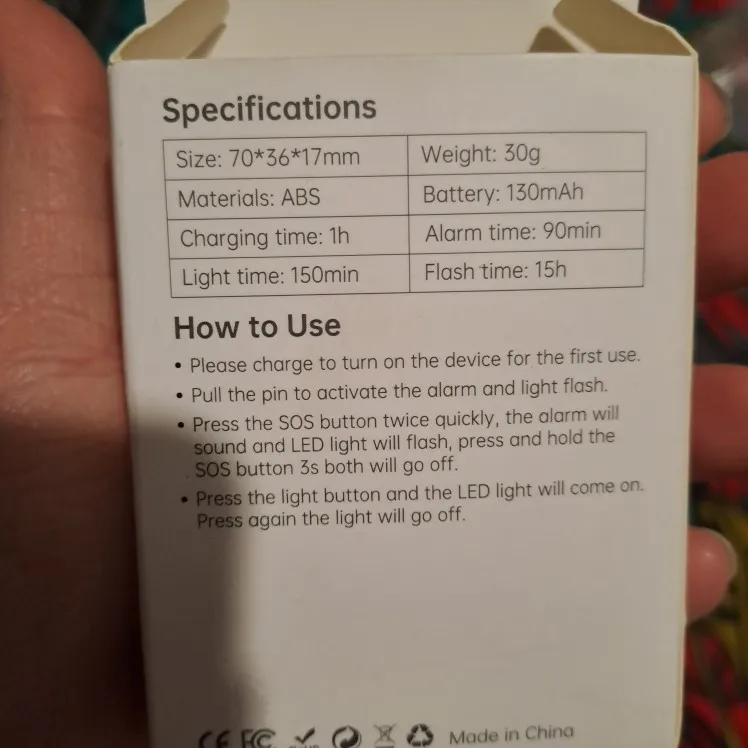 - Mini SOS Self Defense Alarm Weight: 2 Ounces