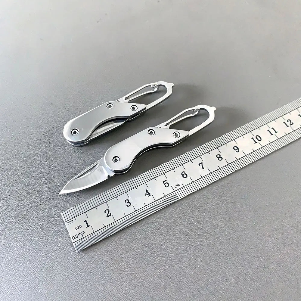 Mini Stainless Steel Folding Knife with Built-In Carabiner