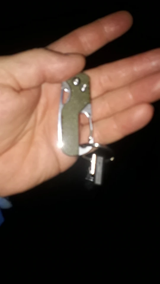 Attach the compact multi-tool keychain to your bag hook loop or keys.
